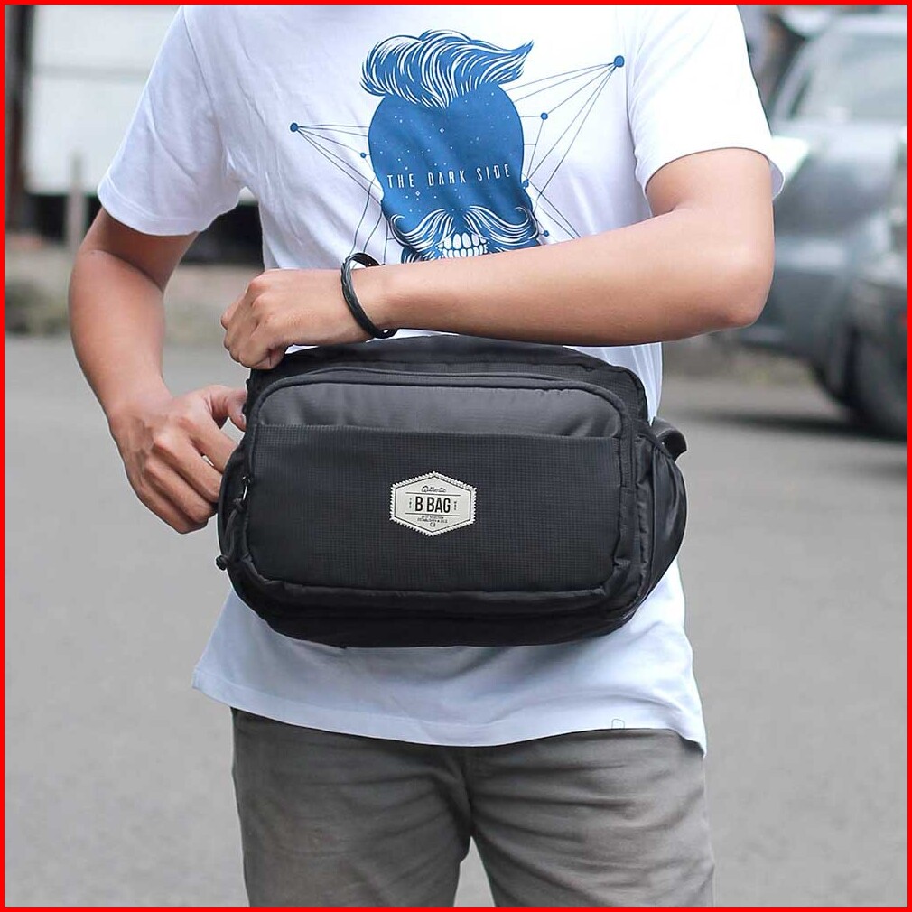 Tas Selempang Waist Bag Pria Besar Masuk Camera Dslr Tas Pinggang Cross Body Cowok Distro Hitam