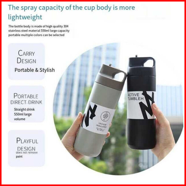 Tumbler Active Termos Stainless Steel Dengan Sedotan Dan Gagang 550 Ml Hn2244