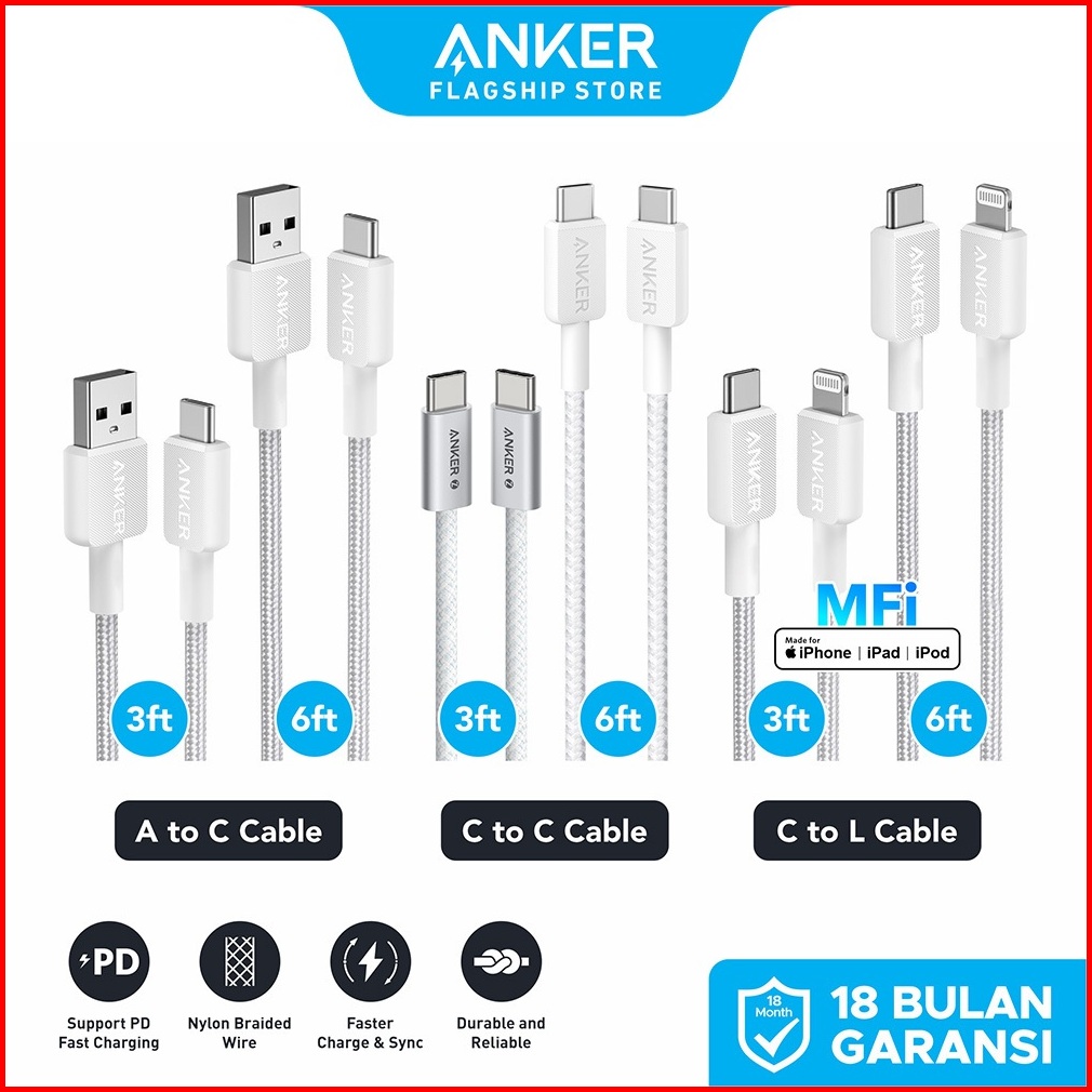 Anker Kabel Pd Type C To Usb A Type C And Lightning 15w 60w 240w 3ft 6ft Max 3a 5a Fast Charging For Mfi Iphone X 11 12