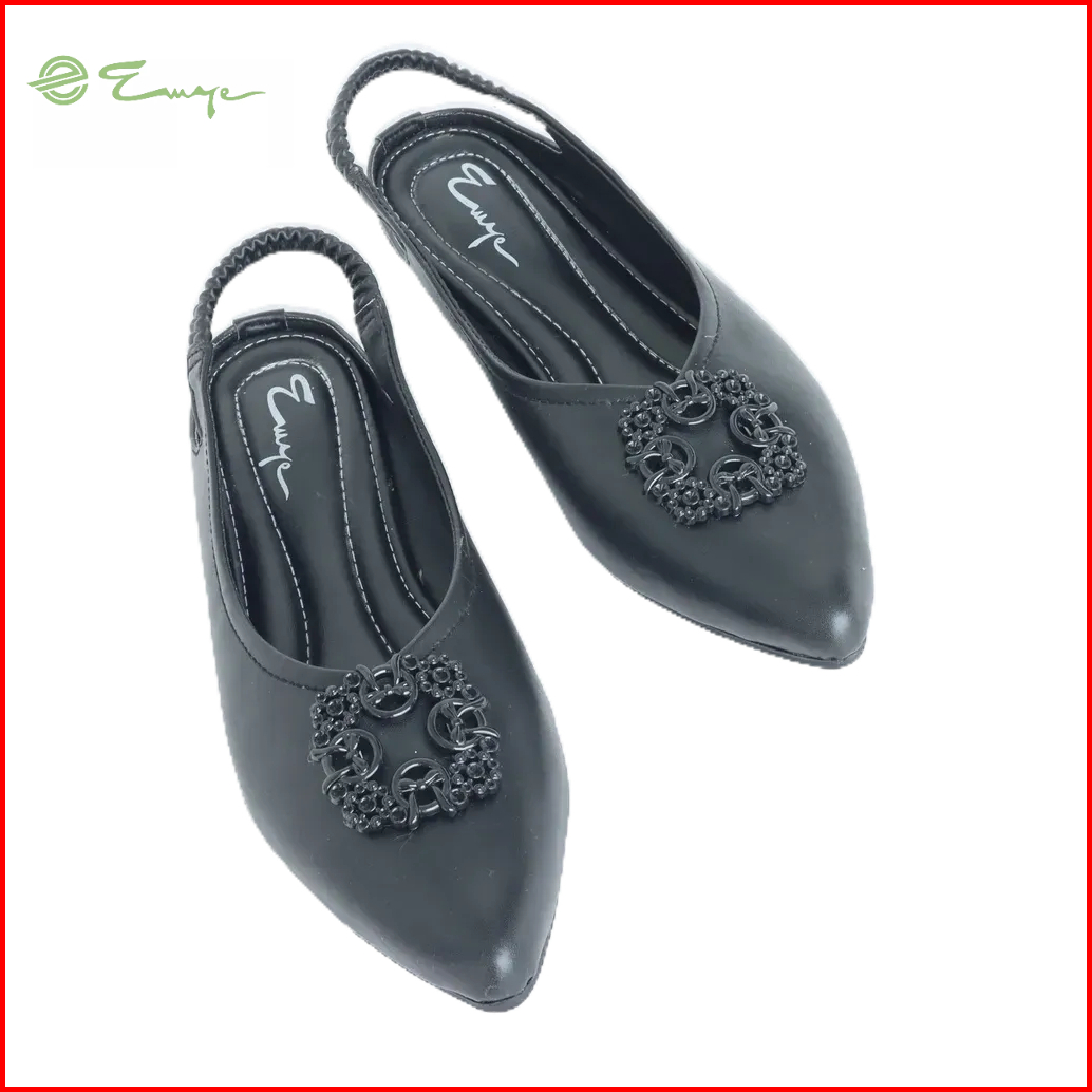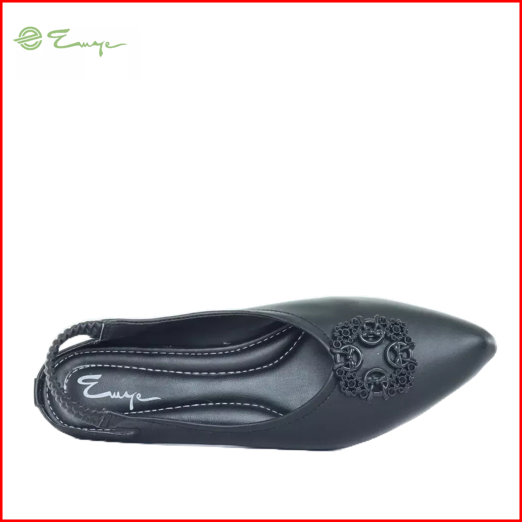 Emye - Sepatu Sandal Flatshoes Balet Wanita Tali Belakang 37-40 Hitam Cream