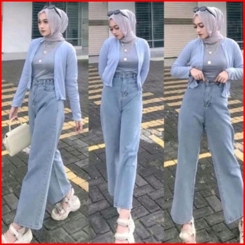 Celana Kulot Jeans Mozza Wanita Highwaist Premium