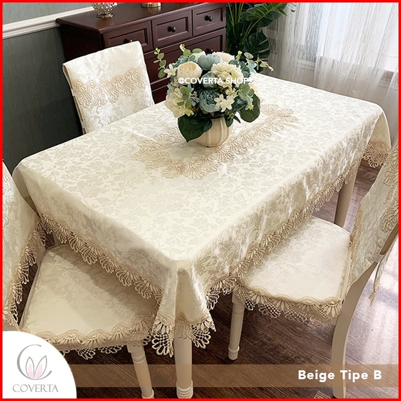 Taplak Meja Makan Bordir Segi 175x130cm 4-6kursi - Sarung Kursi Tidak Termasuk