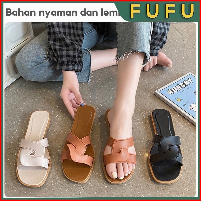 Fufu Sendal Slop Sandal Rumah Sandal Wedges Baru Sandal Wanita Fashion Korea Import Real Pict