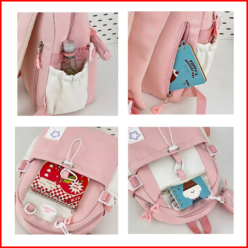 Widget Gratis Tas Sekolah Ins Wanita Lucu Tas Ransel Serut Siswa Perempuan Volume Tinggi Tas Bahu Kapasitas Besar Korea