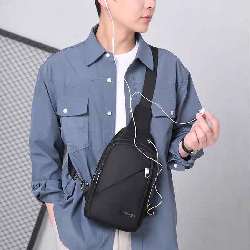 Tas bahu pria, tas kurir motor, kain tahan air Korea gaya baru 2025