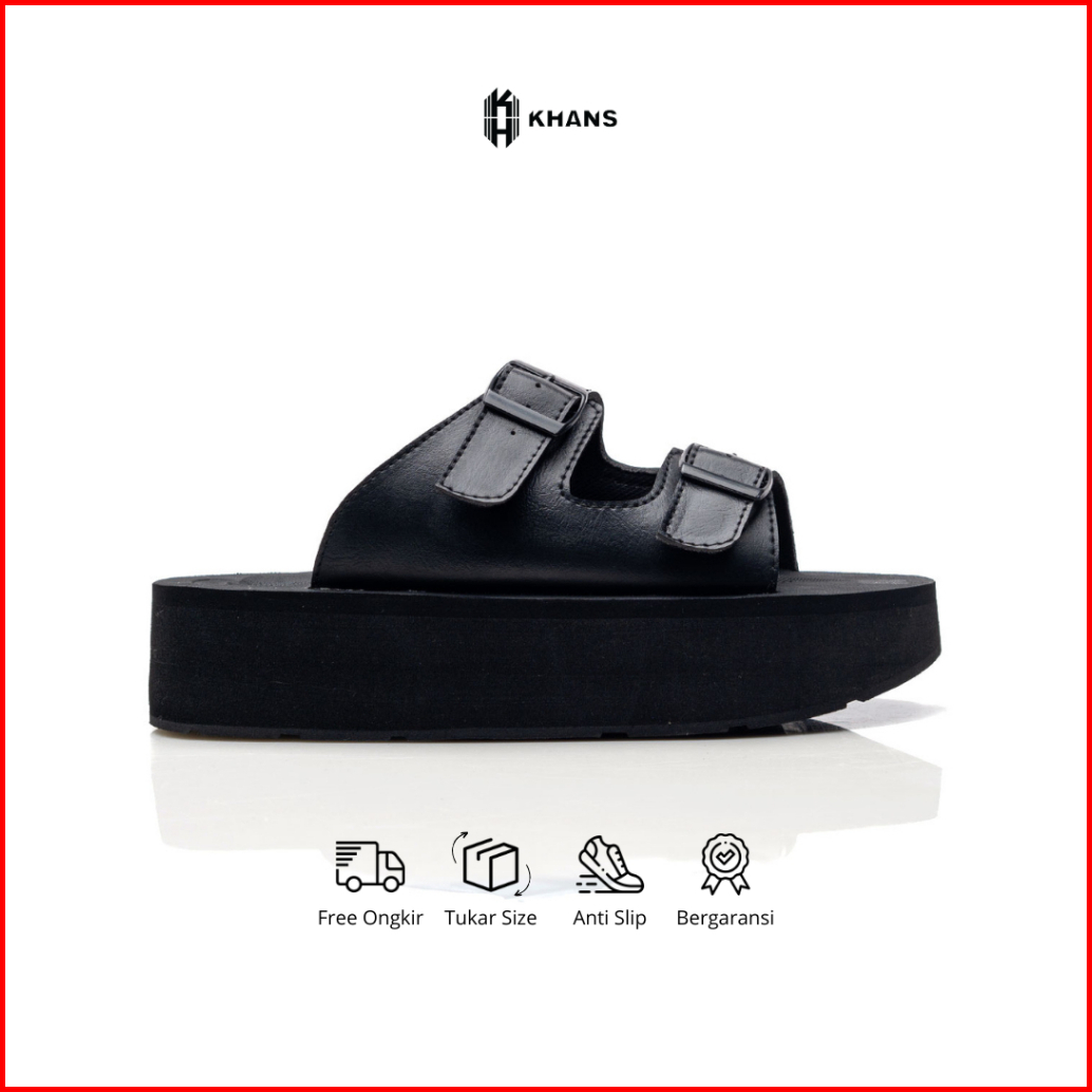 Khans - Sandal Platform Wedges Wanita - Cain Black