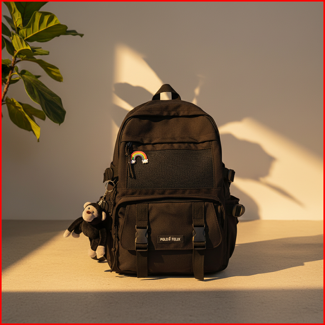 Tas Ransel Wanita Korea School Backpack Pria Wanita Remaja Hitam Polos