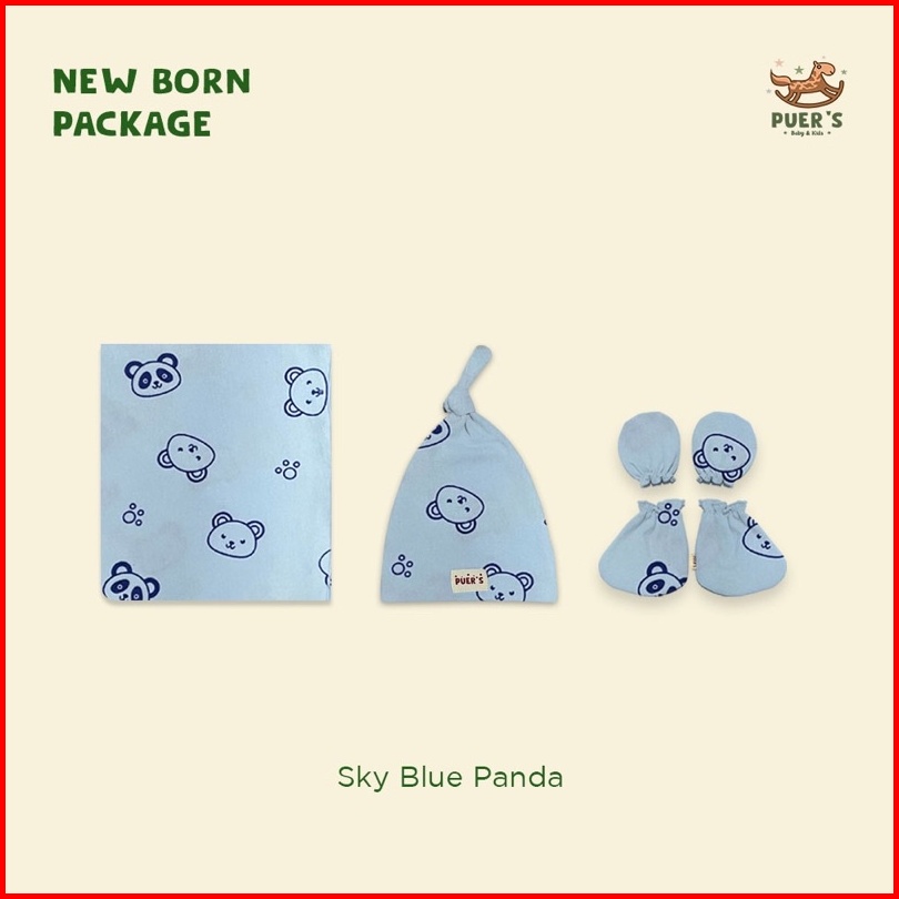 Puers Newborn Package Paket Bedong Bayi Swaddle Set Sky Blue Panda