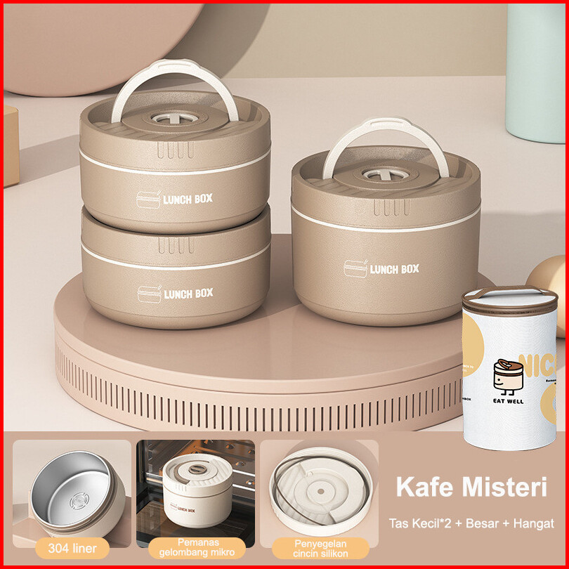 Set Lunch Box Stainless Baja Tahan Karat 304 Tempat Bekal Makan Anti Tumpah Alat Makan Gratis