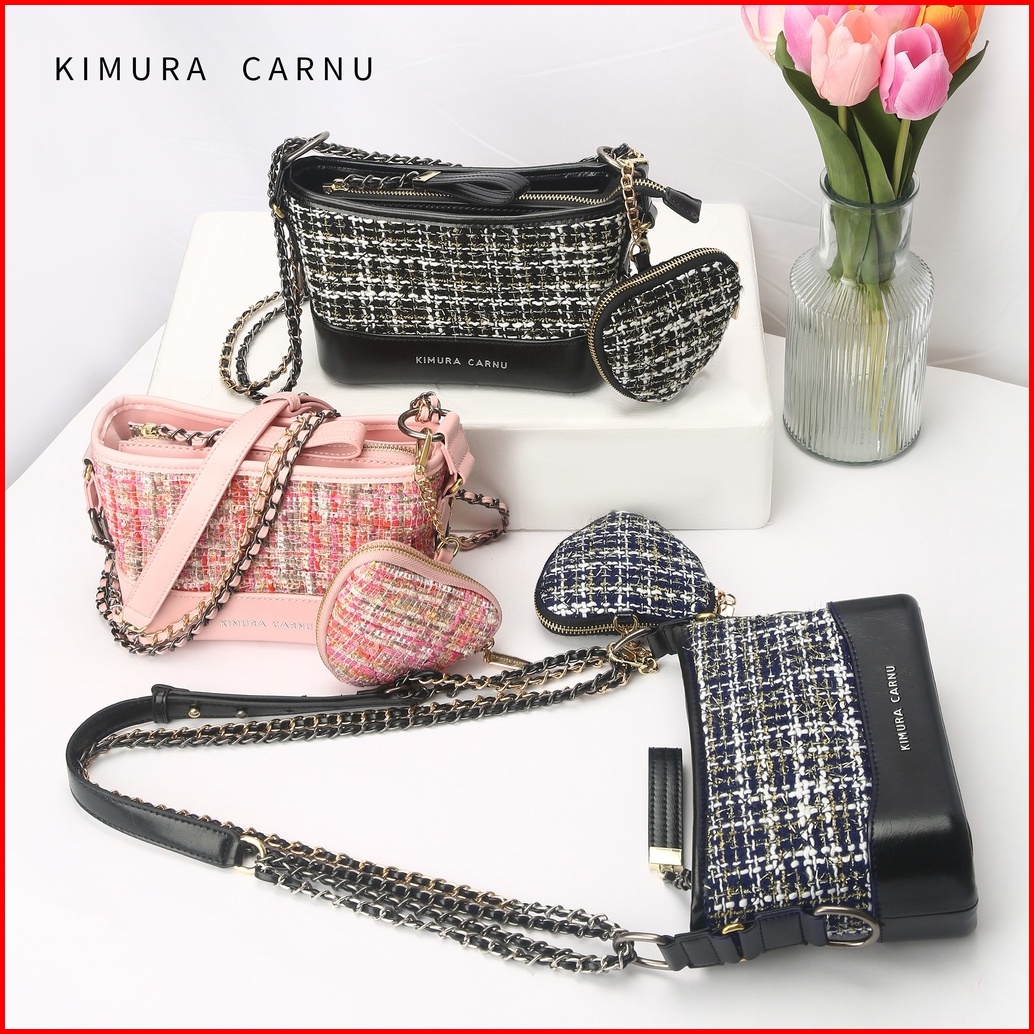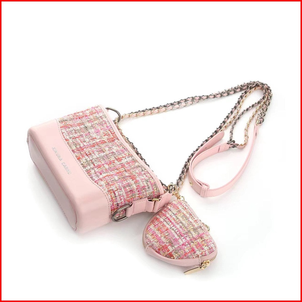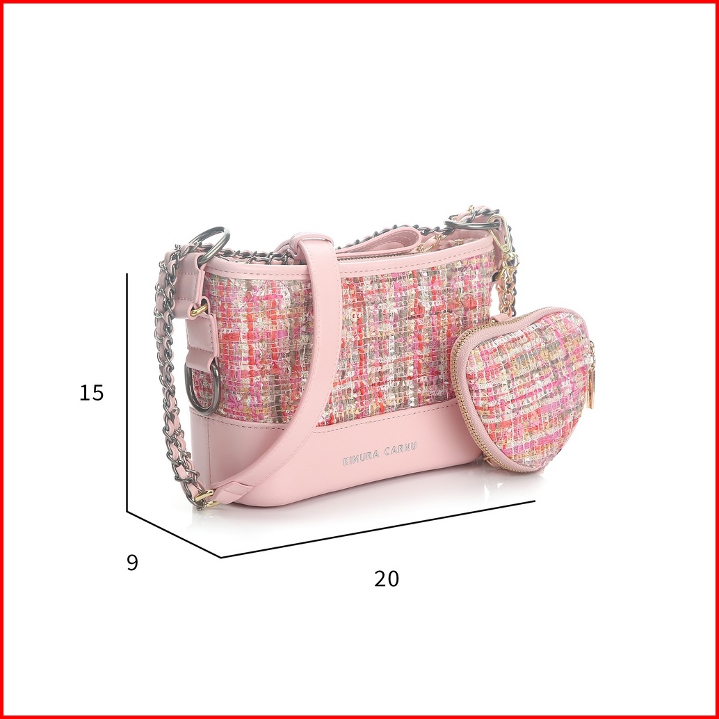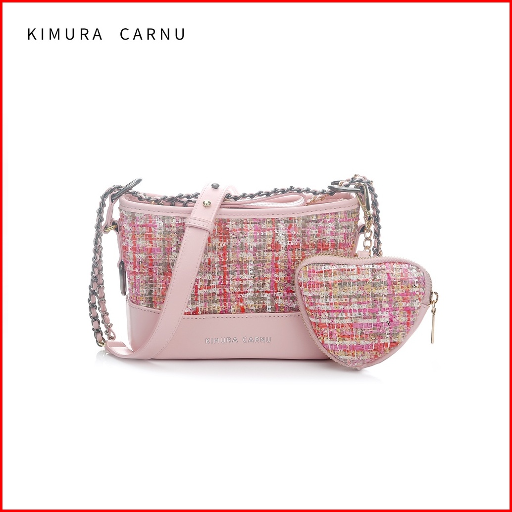 Kimura Carnu -tas Kulit Rajut Wanita Tas Bahu Selempang 2in1 Pink 6106