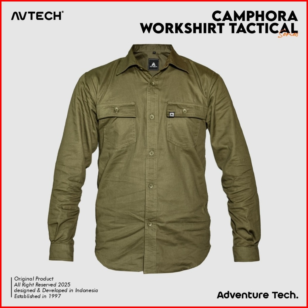 Avtech - Kemeja Lengan Panjang Pria Wanita Workshirt Tactical Katun Twill Reguler Fit - Camphora