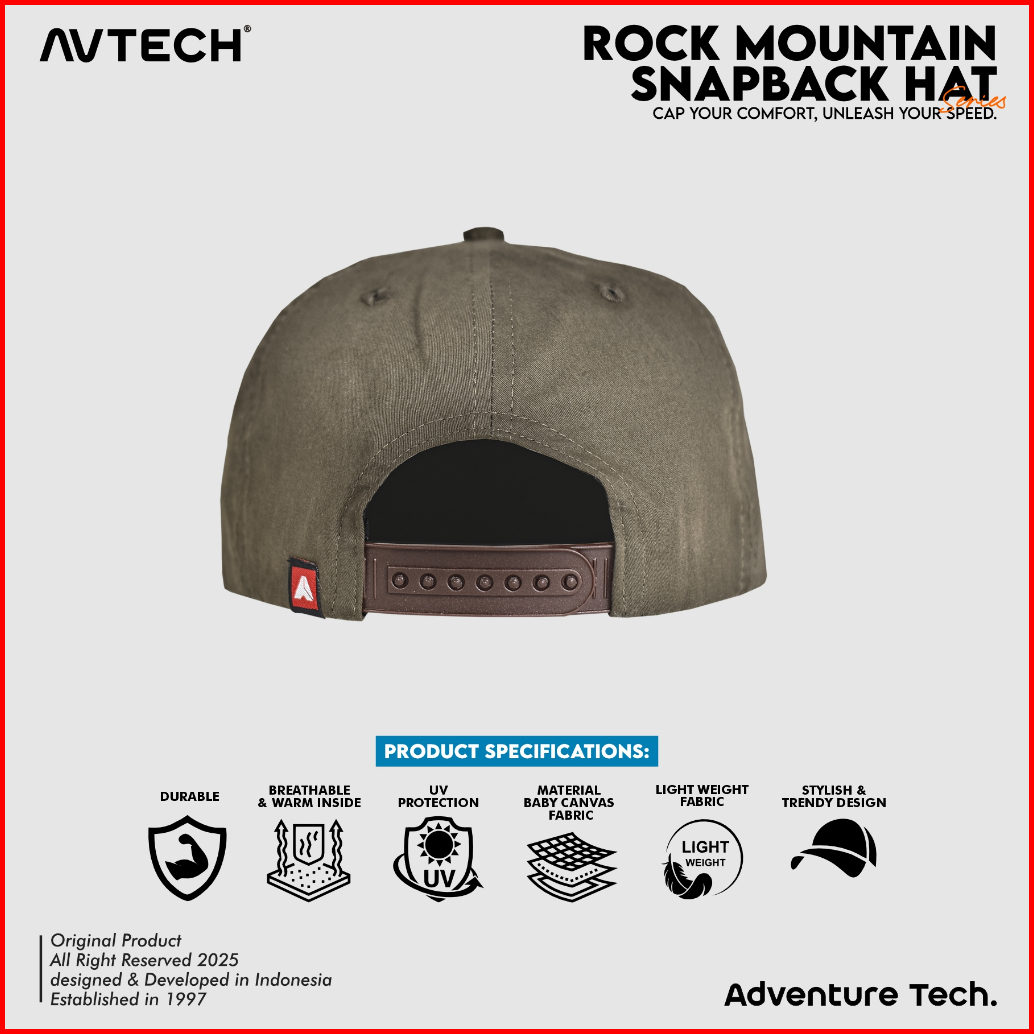 Avtech - Topi Snapback Hat Caps Olahraga Outdoor Casual Lifestyle Bordir All Size - Rock Mountain
