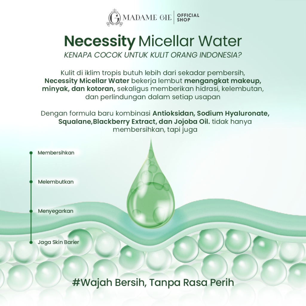 [ISI 2] MADAME GIE Necessity Gentle Wash Micellar Water 100ml & 300ml – Pembersih Wajah Makeup Remover Travel Size & All