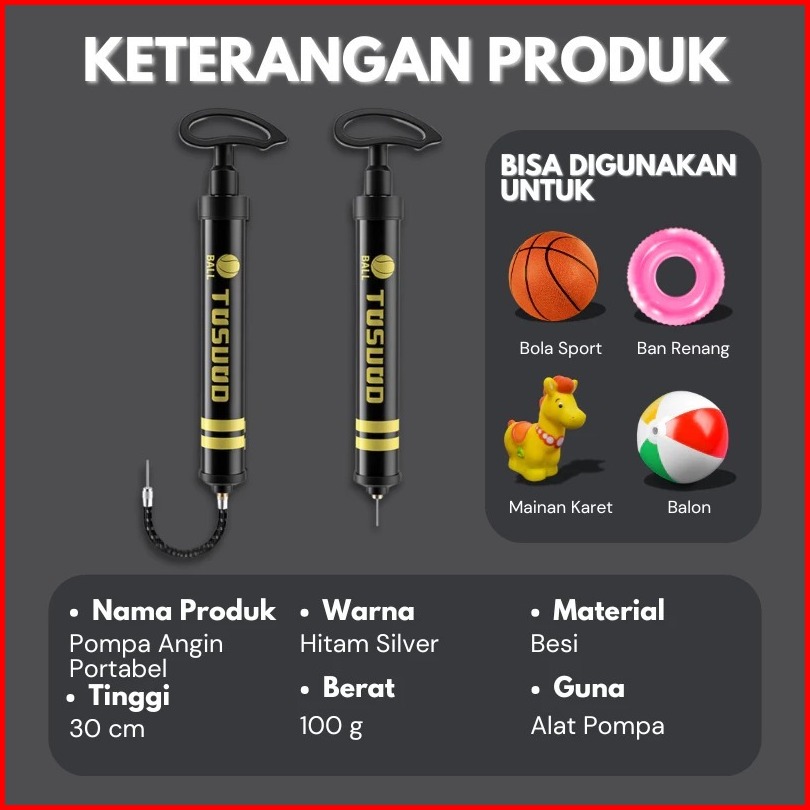 Pompa Bola Portable 130 Psi Pompa Angin Multifungsi Pompa Bola Sepak Basket Voli Balon Extra Pentil