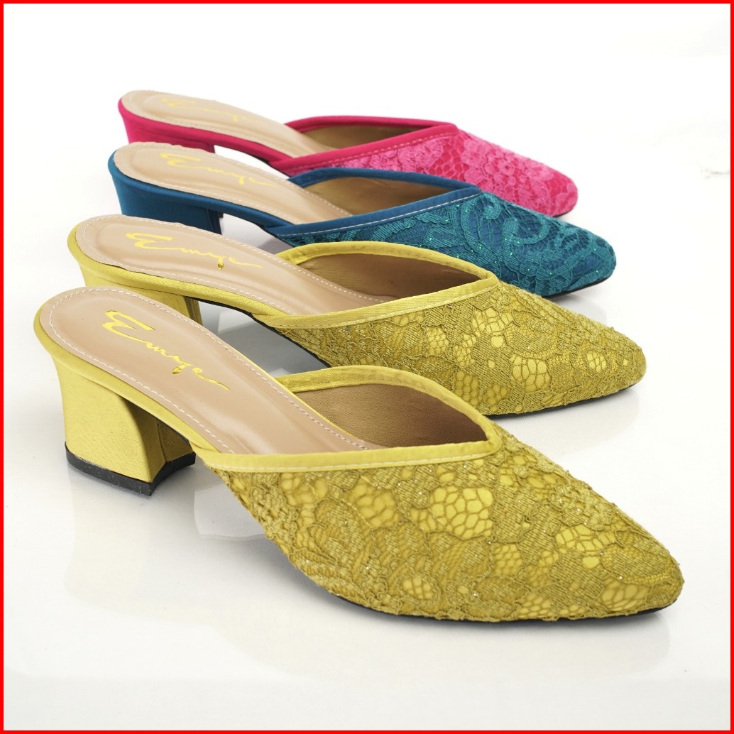 Emye - Sepatu Sandal Pesta Pengantin Kodangan Wanita 5cm Brukat Glitter Mules L05