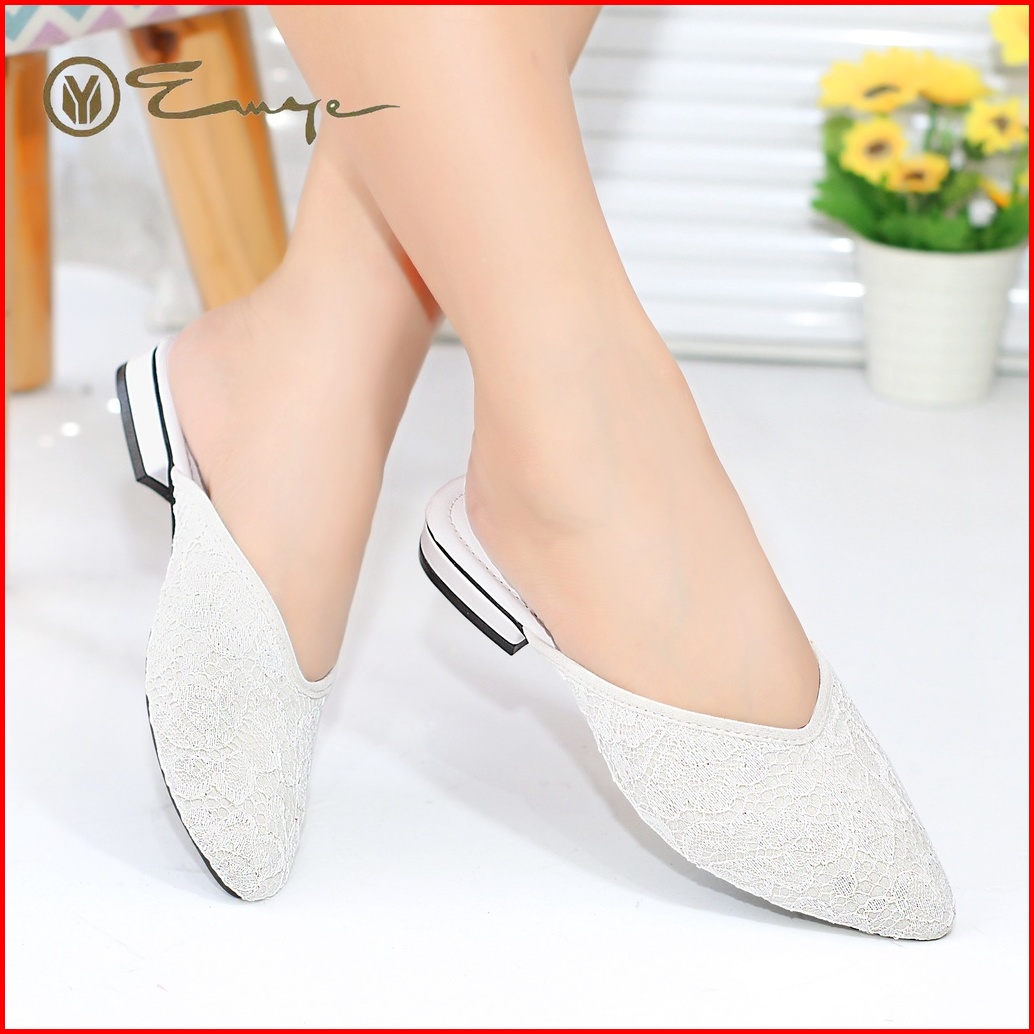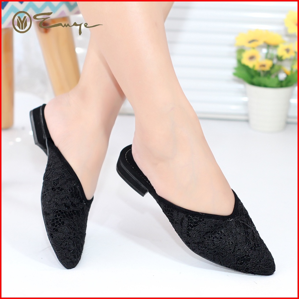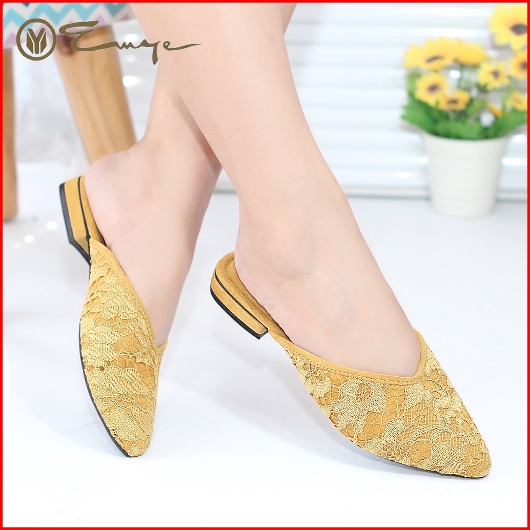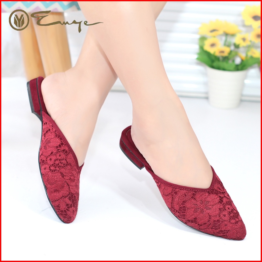 Emye - Sandal Pesta Wanita Jumbo 42 43 44 45 Brukat Glitter Slop Pengantin Kondangan Brukat
