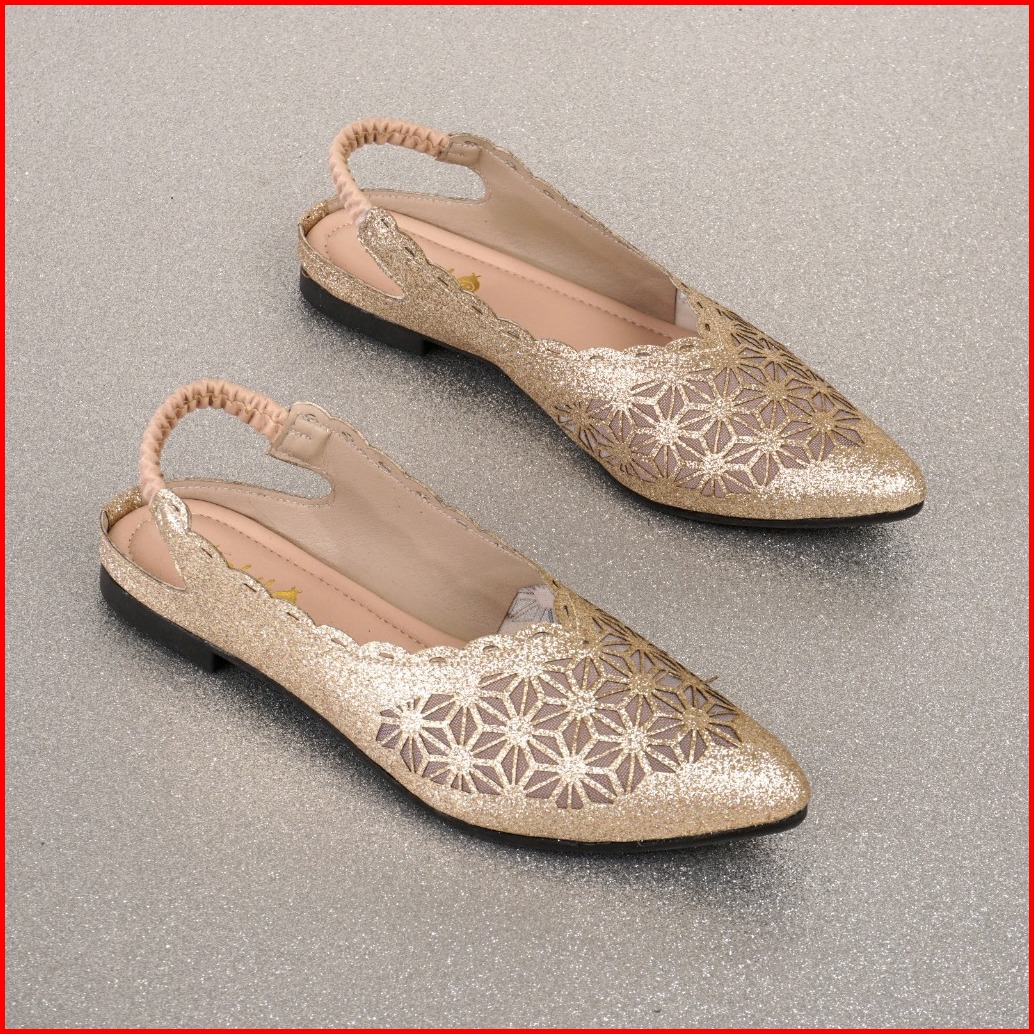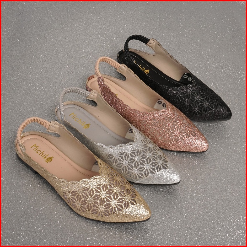 Sepatu Pesta Flatshoes Wanita Glitter Premium Motif Bunga Slipon
