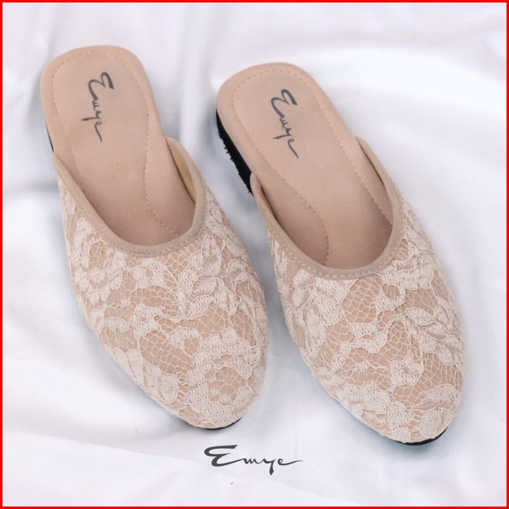 Emye Sandal Slop Pengantin Pria Warna Size 38-45 I Sendal Selop Pengantin Pria Brukat Putih