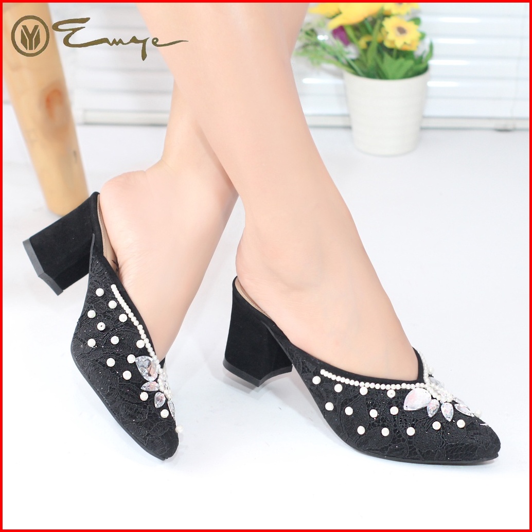 Emye - Sepatu Sandal Heels Pengantin Brukat Payet Wanita 7cm Dan 5 Cm Aster