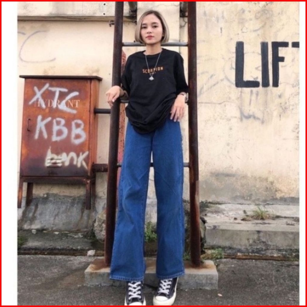 Celana Kulot Jeans Highwaist Wanita Loose Korean Style Terbaru