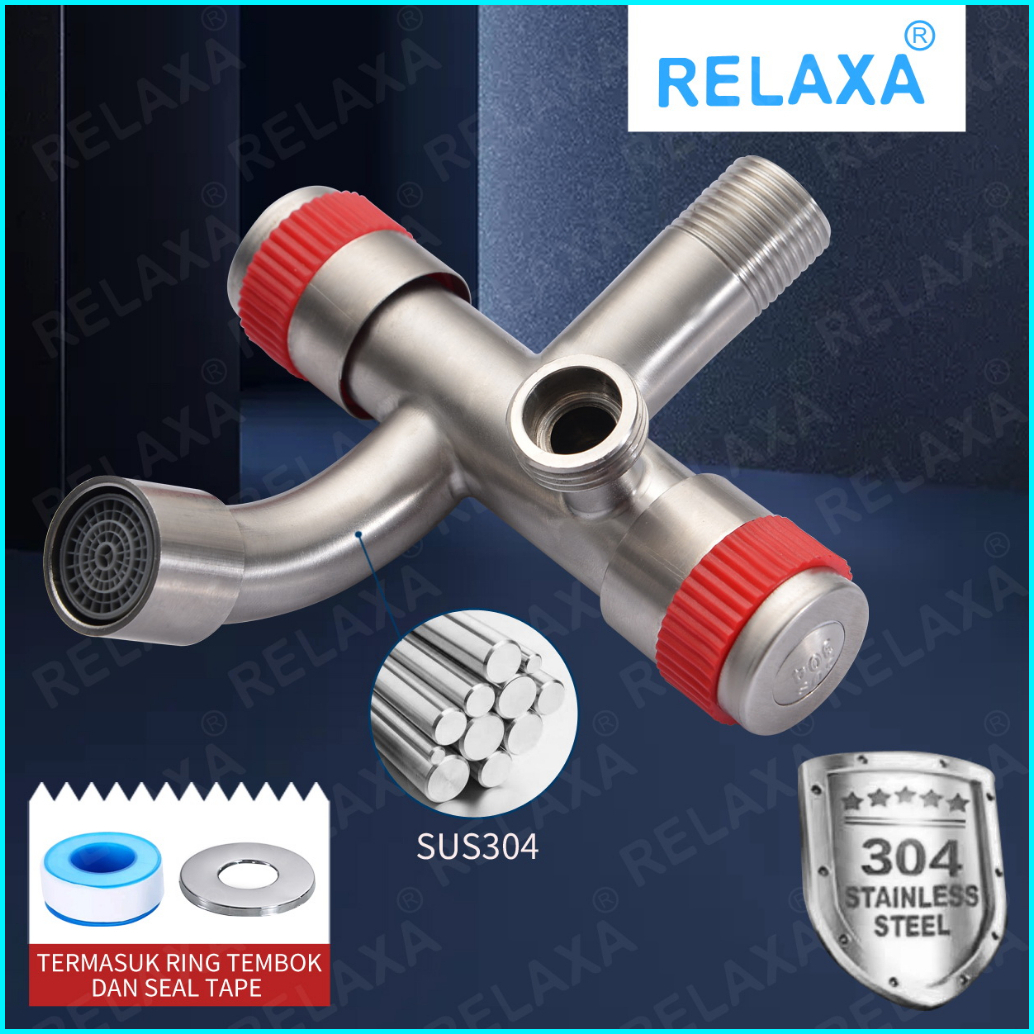 Keran Air Kran Cabang 2 Dua Engkol Keran Shower Multifungsi Anti Karat Keran Cabang Full 100 Stainless Steel Sus 304 Ter