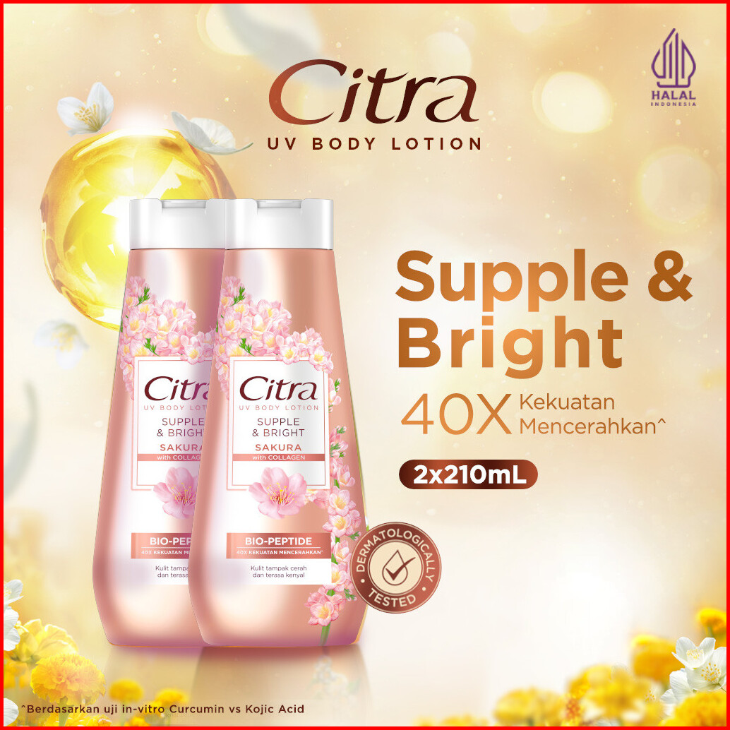 Citra Uv Body Lotion Supple Bright Sakura 210ml Twinpack - Mencerahkan Dan Kenyal
