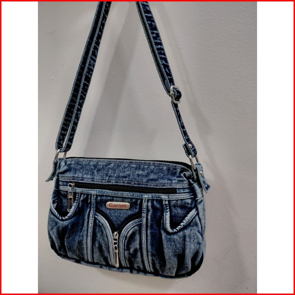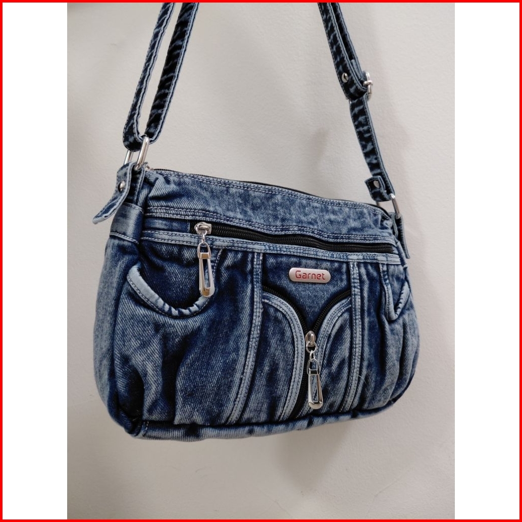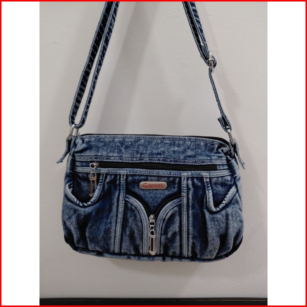 Tas Selempang Wanita Denim Bahan Tebal Aksesoris Nikel