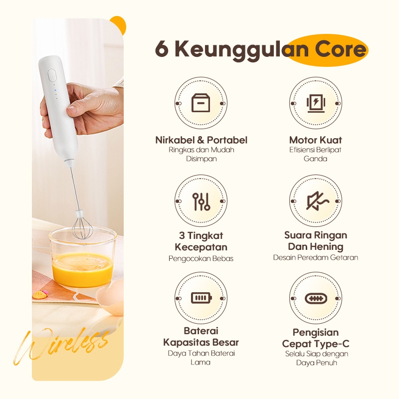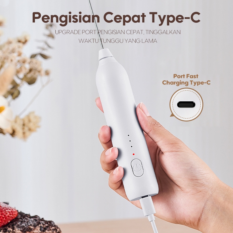 Hand Mixer Mini Mixer Pengocok Susu Milk Frother High Speed Rechargeable Type-C