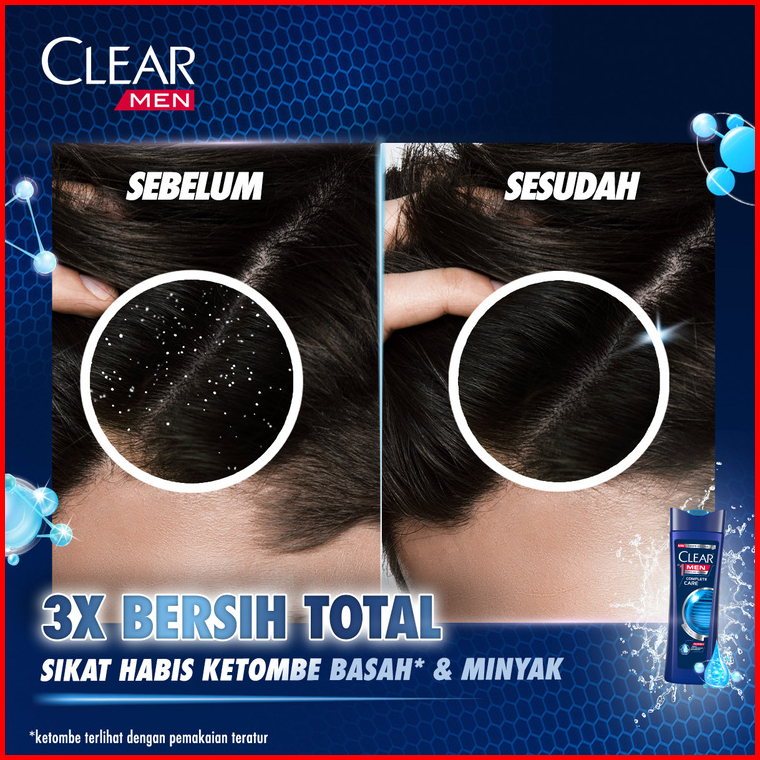 Clear Men Shampoo Anti Ketombe Perawatan Total Active Dengan 3 Cleansing Factor Anti Gatal Lawan Extra Minyak - 160ml