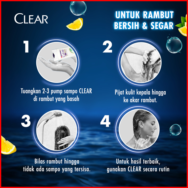 Clear Men Shampoo Anti Ketombe Menthol Fresh Active Dengan 3 Cooling Factor Untuk Kesegaran Hingga 48 Jam Serta Sensasi
