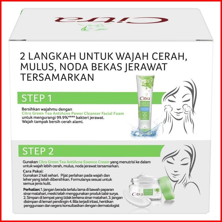 Citra Moisturizer Krim Wajah Pelembab Wajah - Anti Acne Green Tea 5x Spot Reduction 40g Twinpack