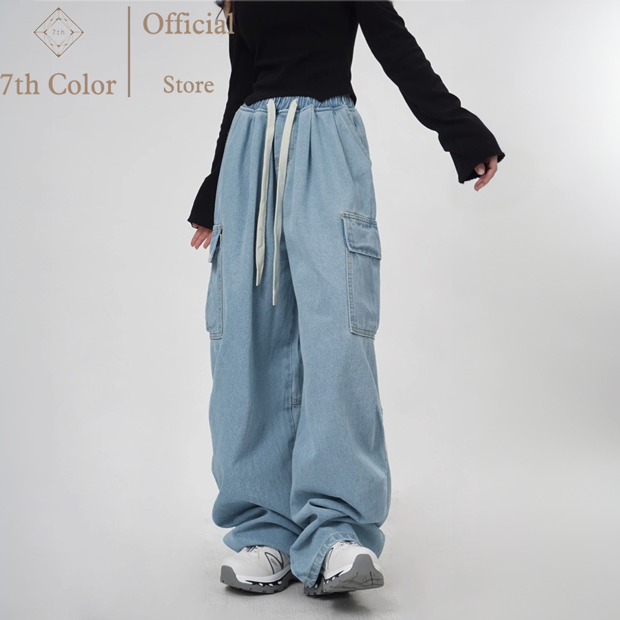 7th Color / Ready Kirim Celana Tali Serut Cargo Jeans Panjang Wanita Celana Korean Style Celana Kulot Denim