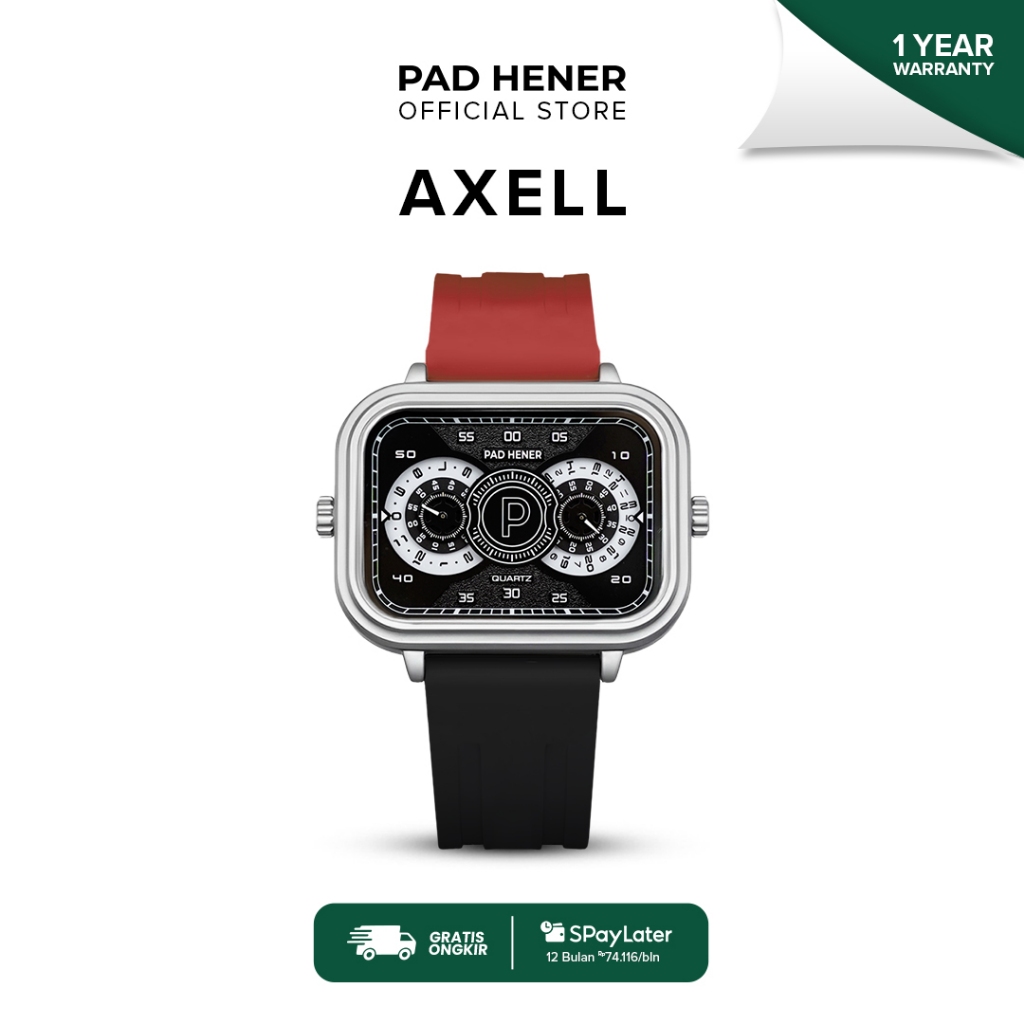 PAD HENER Axell Jam Tangan Pria Wanita Anti Air Dual Time Analog Twotone Strap Rubber