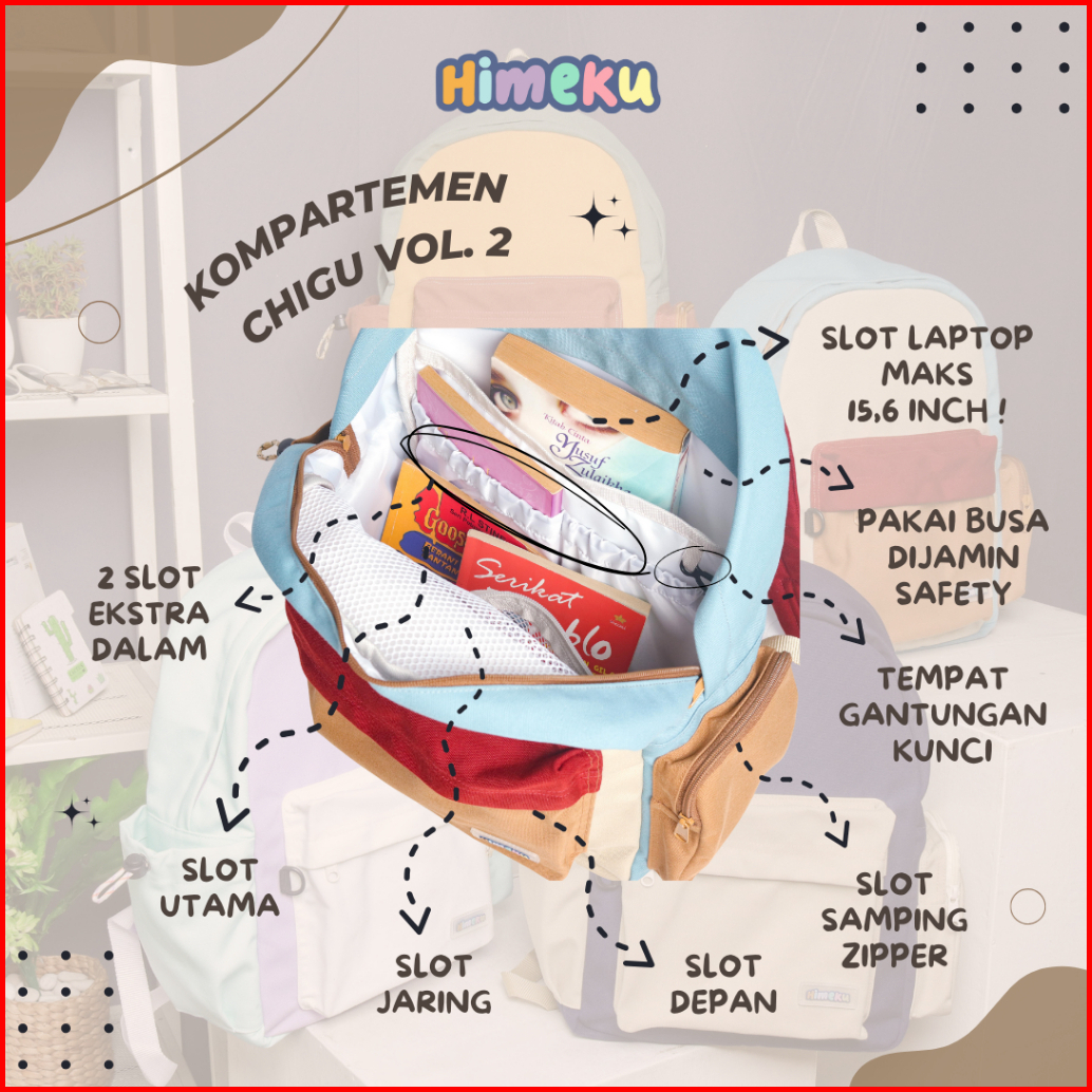 Himeku Chigu Vol 2 Backpack - Tas Sekolah Kuliah Kerja - Tas Laptop - Ransel Besar Pria Wanita Kanvas