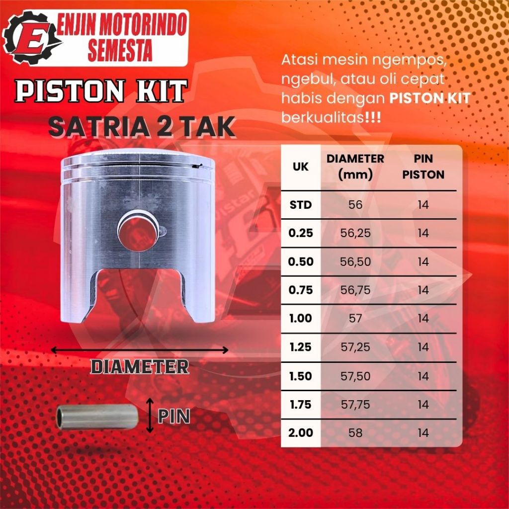 RKN PISTON KIT SATRIA 2 TAK STD, 0.25, 0.50, 0.75, 1.00, 1.25, 1.50, 1.75, 2.00