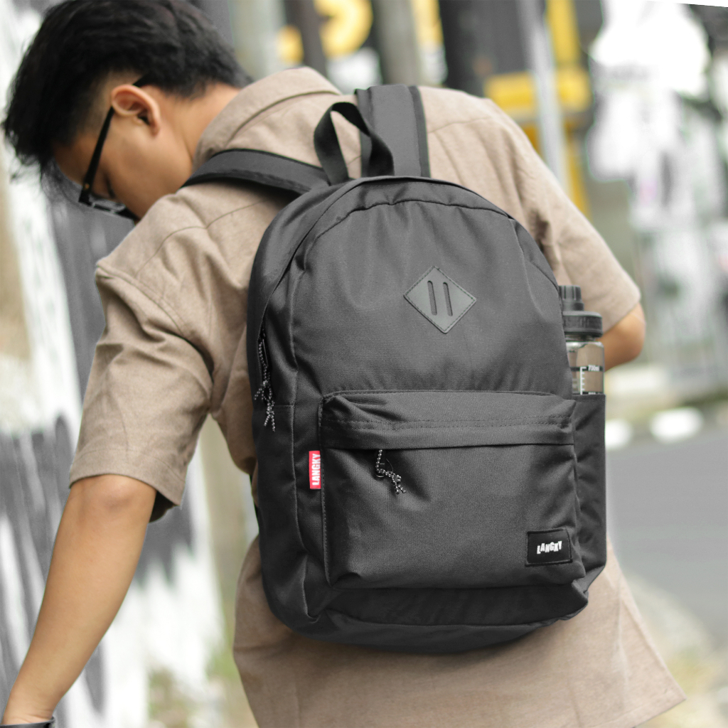 Tas Gendong Sekolah Simple Laptop Ransel Pria Wanita Langky IYCE E Wave Black