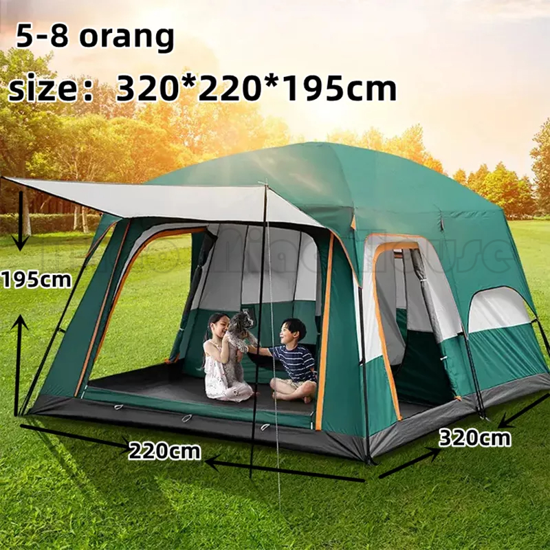 8-12 orang Tenda camping Tenda Tahan Air Lapisan Ganda Pertemuan Keluarga Tenda Besar Portable outdoor waterproof and wi