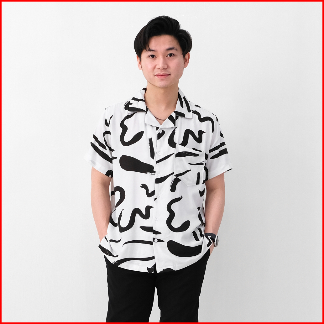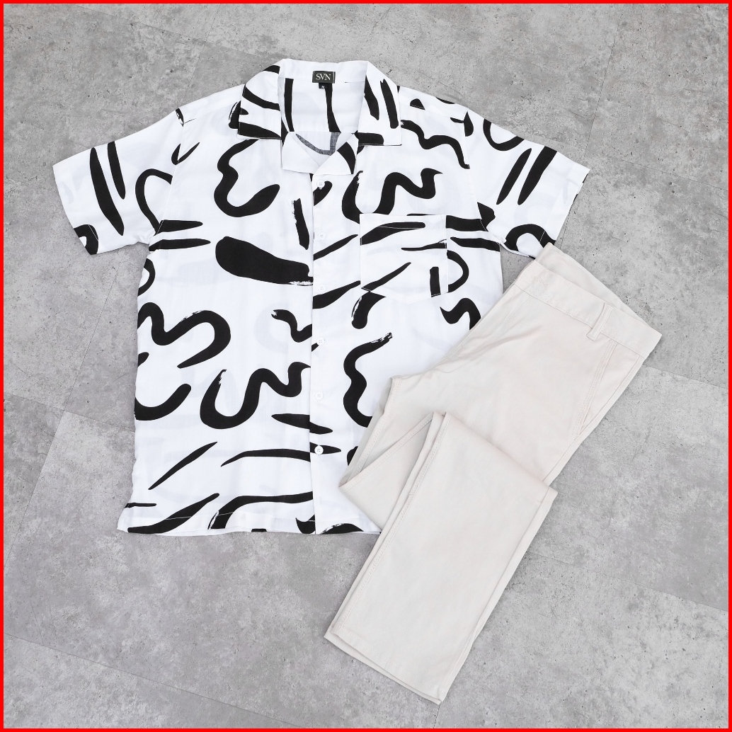 Sanvanina Kemeja Pantai Motif Daun Hawaiian Blanco Hawaiian Shirt E-2056