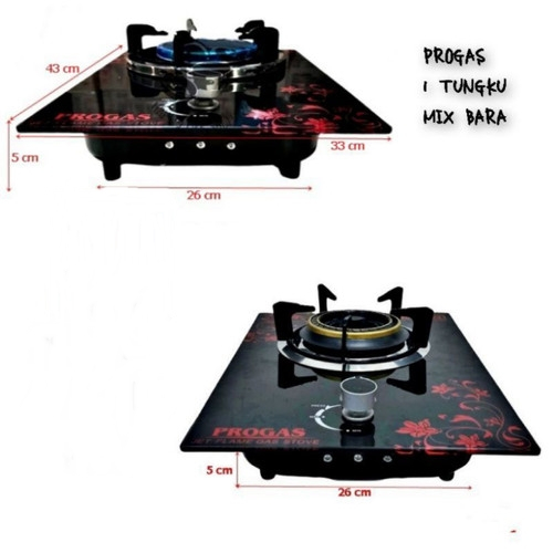 Kompor Gas Tanam Kaca Progas 1 Tungku Bonus Selang Gas+Regulator Meter Kompor 1 Tungku Kompor Gas Tanam Duduk Kaca Proga