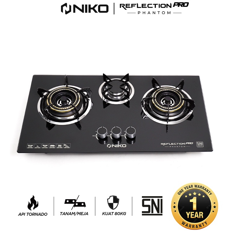 Niko Kompor Gas Tanam Kaca 3 Tungku - Pro Phantom & Next Black