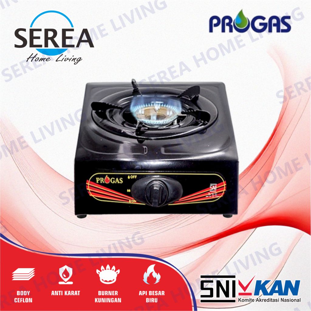 Kompor Gas 1 Tungku Progas Ceflon / Teflon / Kaleng – Api Biru Kualitas Premium Standar SNI Anti Karat