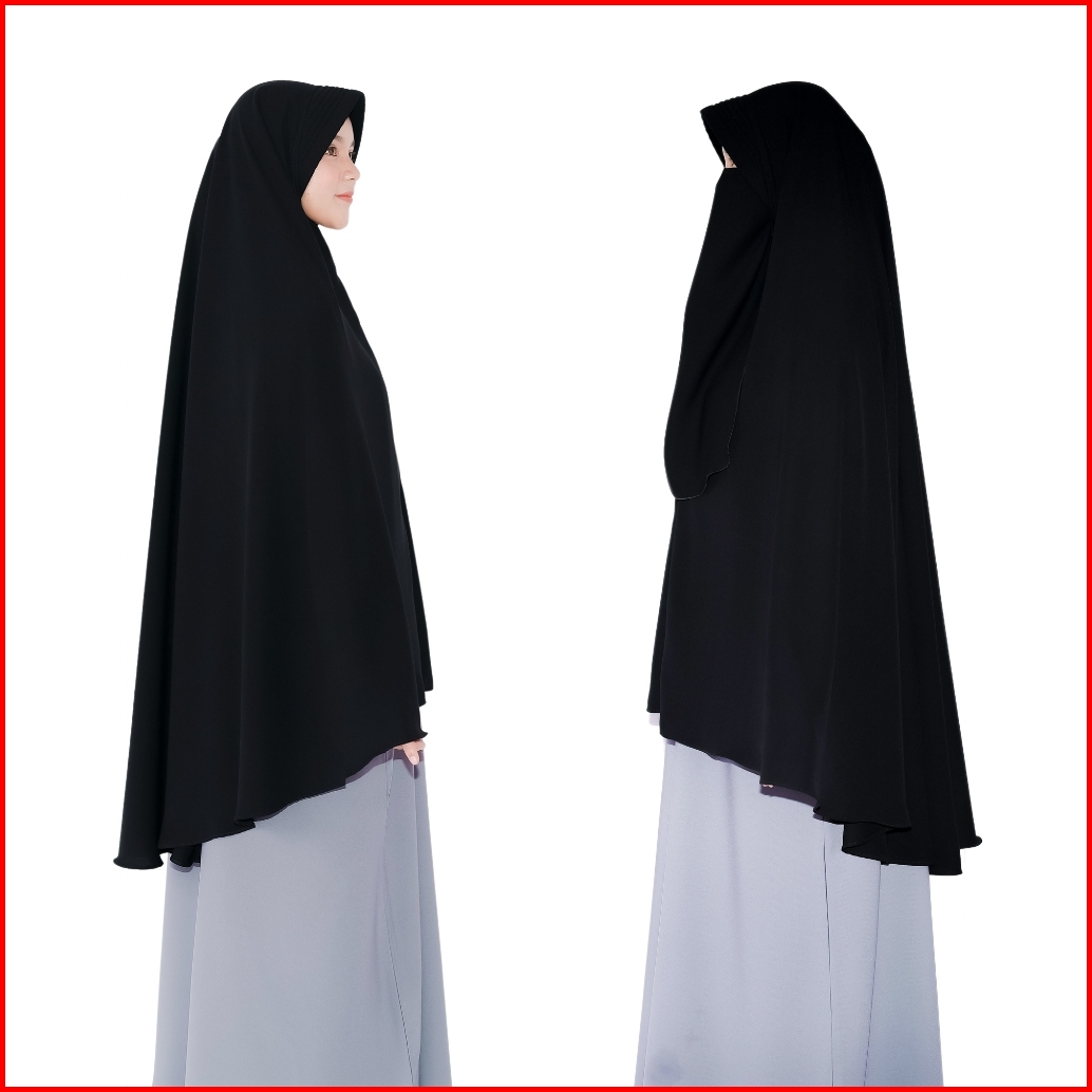 Alsyahra Exclusive - Set Khimar Syari Marwah Pad Cadar Tali Jetblack Size Xl
