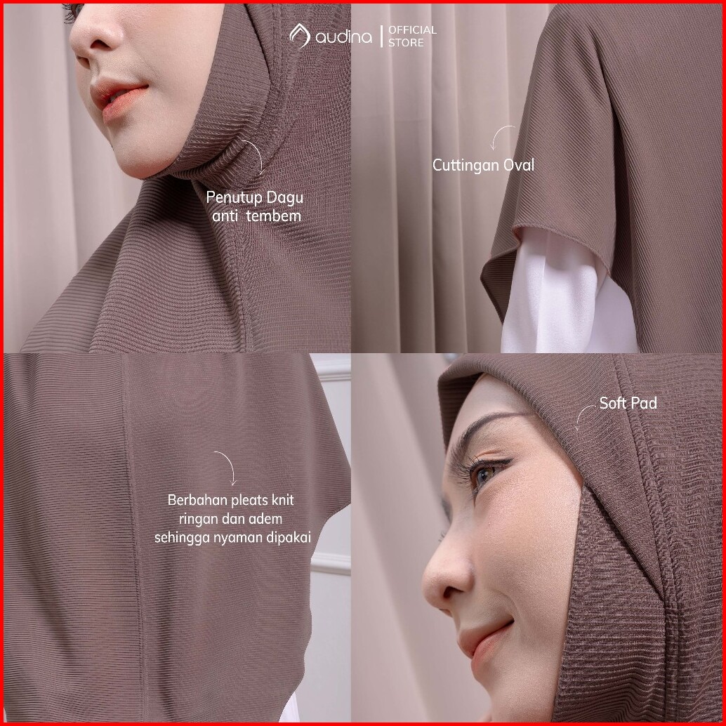 Audina Aisha Khimar Syari Menutup Dagu Bahan Pleated Knit Premium