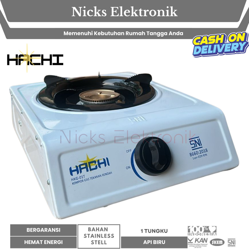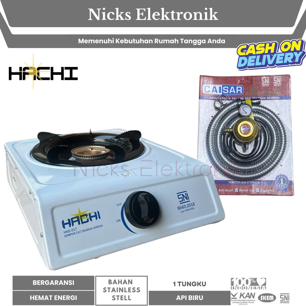 HACHI KOMPOR TEFLON PUTIH PAKET + SELANG + REGULATOR HCI-1TP (1 TUNGKU)