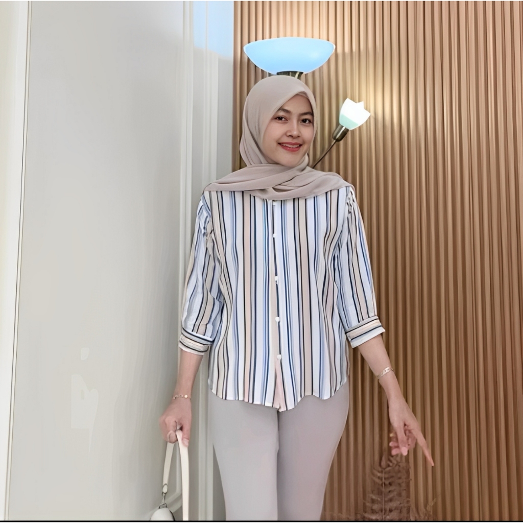 ( PROMO MURAH MERIAH) Atasan Wanita // Daily Top Blouse Motif Salur Lengan 7/8 LD 120cm Kekinian