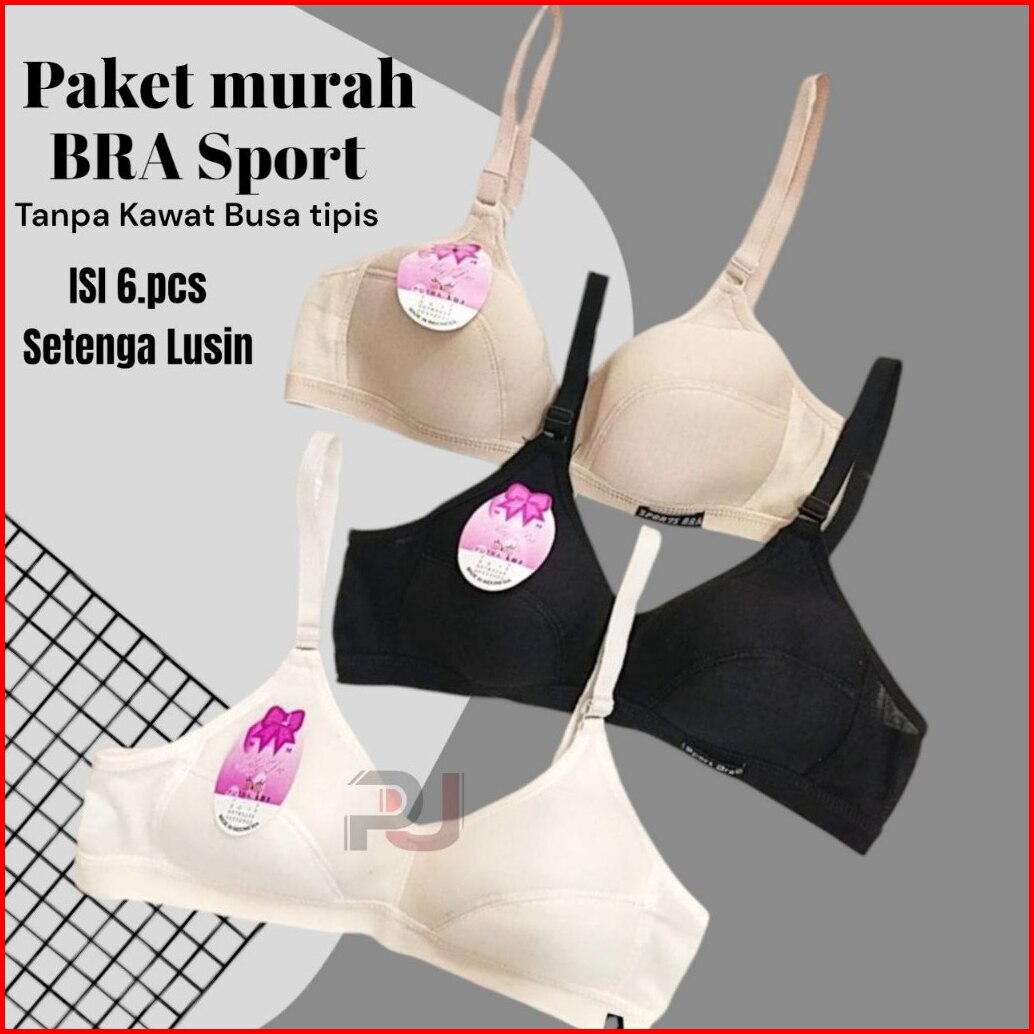 Paket Isi 6pcs Sport Bra Bh Sport Non Busa Non Kawat Bodyfit Katun Kait 2 Sport Bra Wanita Cewek Remaja Dan Dewasa