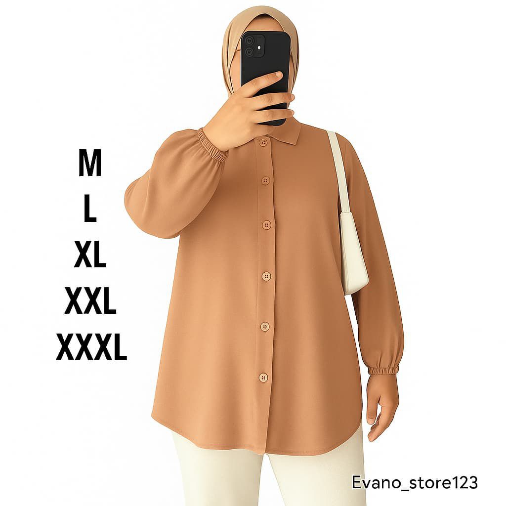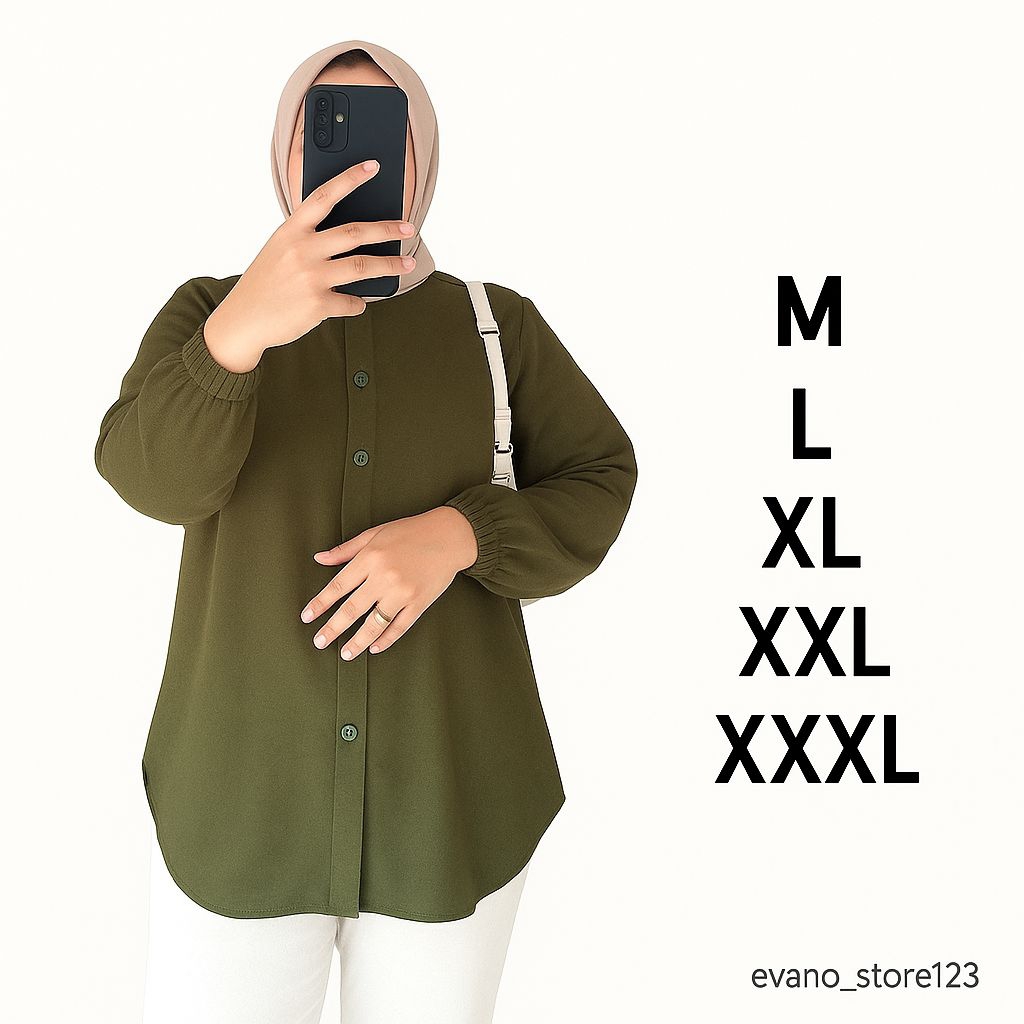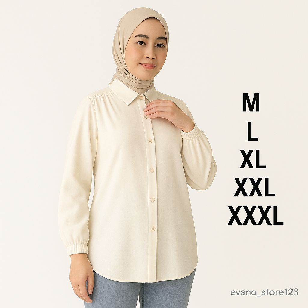 Kemeja Wanita Jumbo Rayon Twill Premium - Blouse Polos Adem M-XXXL Busui Friendly
