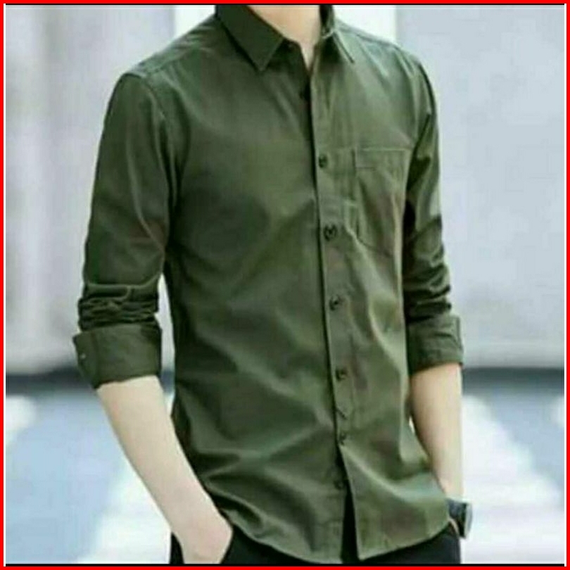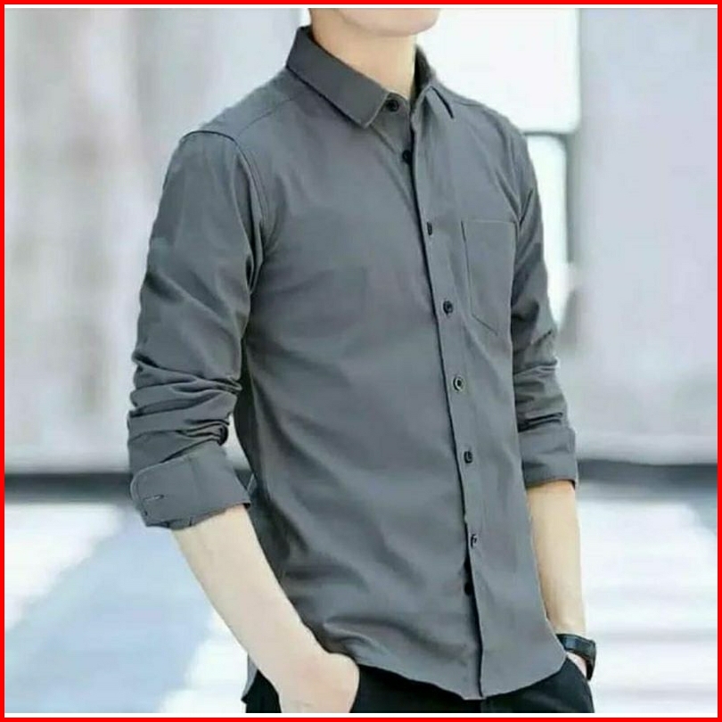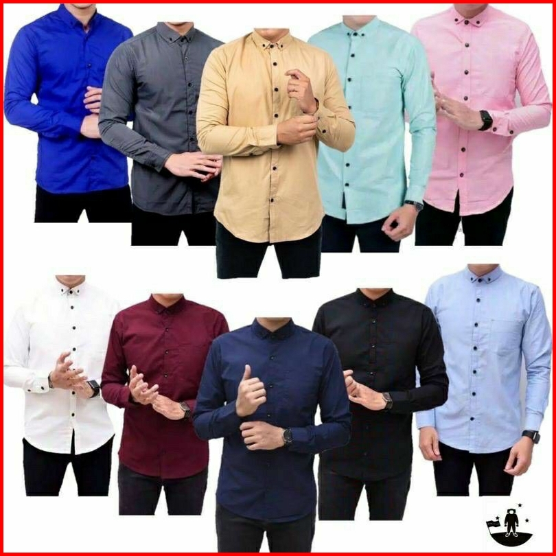 Kemeja Pria Casual Polos Lengan Panjang Kekinian Termurah Atasan Cowok Baju Kerja Kantor Formal Slimfit Reguler Bahan Ka