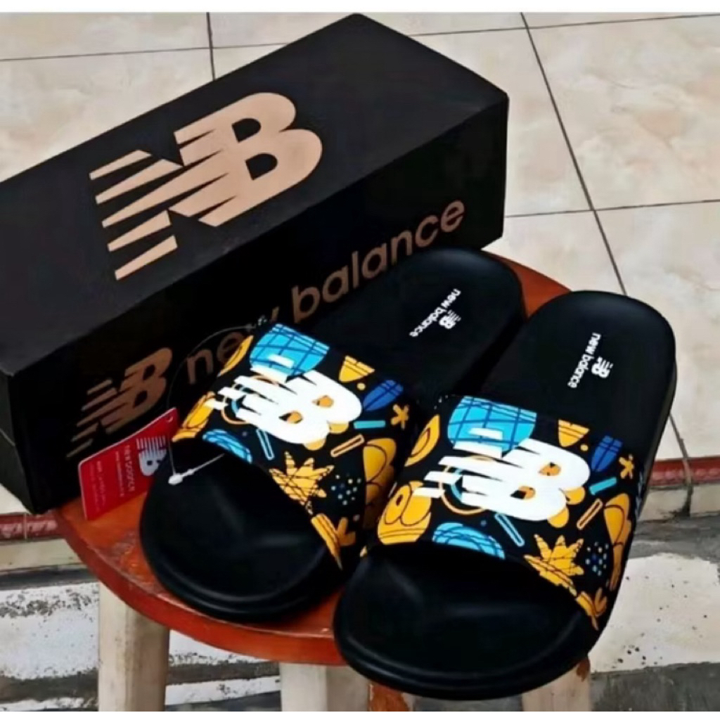 Sandal Slop NB Full Black Pria Wanita Premium/Sandal Slide NB Terbaru Anti Slip Dan Tahan Air Nyaman Di Kaki