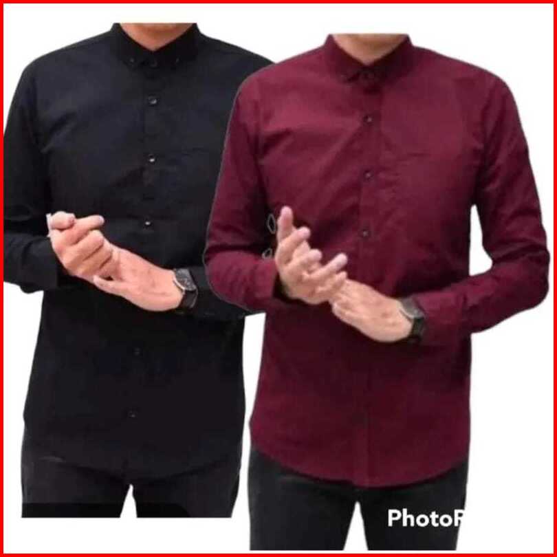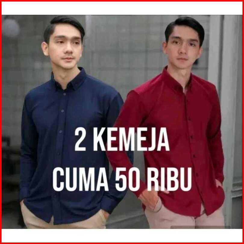 Paket Hemat 2 Pcs Kemeja Pria Polos Lengan Panjang Baju Hem Pria Casual